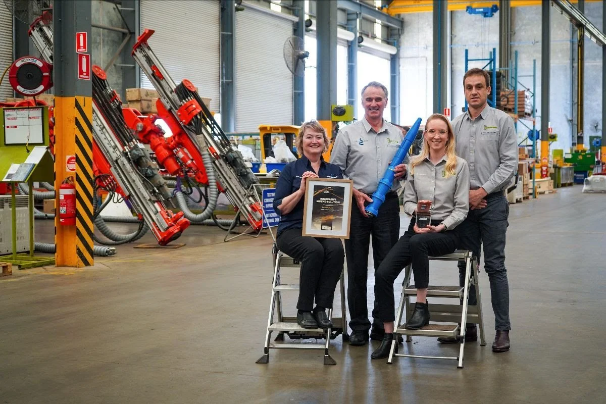 The Rattlejack and Murray Engineering team at Murray Engineering’s workshops in Pinjarra, Western Australia. Pictured, from left to right: Sue Sutton & Leigh Sutton (Director- Rattlejack), Shanae Curtis (Marketing & Events Coordinator- Murray Engineering) & Mark Coughlan (CEO- Murray Engineering). Image courtesy Murray Engineering.